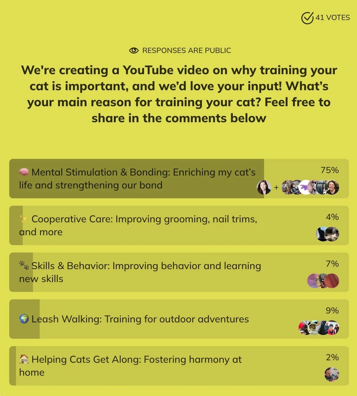 Many cat parents start training to address behavioral challenges like aggression, boredom-induced destruction, or excessive meowing.